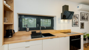 Byt č. 13 sa nachádza na prízemí objektu, kde je spolu 8 dvojizbových jednopodlažných bytov. Má prakticky a pritom veľkoryso riešené vnútorné priestory, ktoré dotvárajú pocit priestrannosti. Obľúbené prepojenie kuchynskej a obývacej časti je ukončené vstupom na terasu, ktorá poskytuje úžasný výhľad na pohorie Vtáčnik. Obývacia izba je presvetlená veľkým francúzskym oknom, ktoré umocňuje kontakt s okolitou prírodou. Okrem obývacej časti s kuchyňou disponuje byt 1 samostatnou izbou, kúpeľňou a technickou miestnosťou. Celková úžitková plocha bytu je 82 m2, pričom samotná obytná plocha je 63 m2. K bytu prináležiaca terasa má výmeru 19 m2, pozemok pred ňou 32 m2 a garáž v suteréne 17 m2.