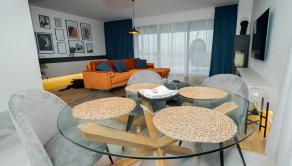 4-izbový byt č. 10 má prakticky a pritom veľkoryso riešené vnútorné priestory, ktoré dávajú pocit voľnosti. Obľúbené prepojenie kuchynskej a obývacej časti je ukončené vstupom na terasu, z ktorej je úžasný výhľad na pohorie Vtáčnik. K bytu prislúcha pozemok prístupný z terasy, ktorý má výmeru 14 m2. Obývacia izba je presvetlená veľkým francúzskym oknom, ktoré umocňuje kontakt s okolitou prírodou. Okrem obývacej časti s kuchyňou, disponuje byt 3 samostatnými izbami, priestrannou kúpeľňou, 2 x WC, technickou miestnosťou a skladom, vďaka čomu bude mať každý obyvateľ bytu dostatok súkromia a komfortu. Celková úžitková plocha 4-izb. bytu je 197 m2, pričom samotná obytná plocha má 127 m2. K bytu prináleží terasa aj balkón, spolu o výmere 37 m2 a dvojgaráž v suteréne o výmere 34 m2.