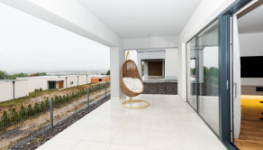 4-izbový byt č. 11 má prakticky a pritom veľkoryso riešené vnútorné priestory, ktoré dávajú pocit voľnosti. Obľúbené prepojenie kuchynskej a obývacej časti je ukončené vstupom na terasu, z ktorej je úžasný výhľad na pohorie Vtáčnik. Obývacia izba je presvetlená veľkým francúzskym oknom, ktoré umocňuje kontakt s okolitou prírodou. Okrem obývacej časti s kuchyňou, disponuje byt 3 samostatnými izbami, priestrannou kúpeľňou, 2 x WC, technickou miestnosťou a skladom, vďaka čomu bude mať každý obyvateľ bytu dostatok súkromia a komfortu. Celková úžitková plocha 4-izb. bytu je 197 m2, pričom samotná obytná plocha má 127 m2. K bytu prináleží terasa aj balkón, spolu o výmere 37 m2, dvojgaráž v suteréne o výmere 34 m2 a pozemok prístupný z terasy, ktorý má výmeru 14 m2.