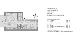 Byt č. 4 je 2-izbový (53,03 m2), nachádza sa na 1.poschodí obytnej sekcie č.1, prináleží k nemu priestranný balkón (9,40 m2), pivnica a parkovacie miesto. Podrobné informácie k bytu a príslušenstvu sú uvedené v pôdoryse, ktorý je súčasťou galérie.