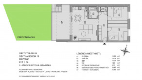 Byt č. 38 je 3-izbový (69,98 m2), nachádza sa na prízemí obytnej sekcie č. 10, prináleží k nemu predzáhradka (59,86 m2), terasa (25,43 m2), pivnica a parkovacie miesto. Podrobné informácie k bytu a príslušenstvu sú uvedené v pôdoryse, ktorý je súčasťou galérie.