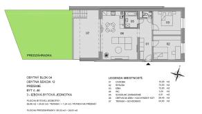 Byt č. 46 je 3-izbový (69,98 m2), nachádza sa na prízemí obytnej sekcie č. 12, prináleží k nemu predzáhradka (56,52 m2), terasa (24,63 m2), pivnica a parkovacie miesto. Podrobné informácie k bytu a príslušenstvu sú vedené v pôdoryse, ktorý je súčasťou galérie.
