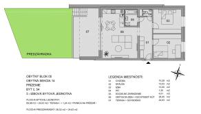 Byt č. 54 je 3-izbový (69,98 m2), nachádza sa na prízemí obytnej sekcie č. 14, prináleží k nemu predzáhradka (56,52 m2), terasa (24,63 m2), pivnica a parkovacie miesto. Podrobné informácie k bytu a príslušenstvu sú vedené v pôdoryse, ktorý je súčasťou galérie.