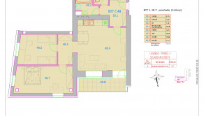 Byt č.48 je 3-izbový (83,84 m2), má balkón o výmere 6,77 m2 a pivnicu 2,37 m2. Nachádza sa na 1 poschodí obytného bloku A. Podrobné informácie k bytu a príslušenstvu sú uvedené v pôdoryse, ktorý je súčasťou galérie.