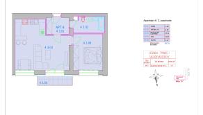 Apartmán č.4 je 2-izbový (55,64 m2), má balkón o výmere 3,47 m2 a pivnicu 2,41 m2. Nachádza sa na 2 poschodí obytného bloku A. Podrobné informácie k bytu a príslušenstvu sú uvedené v pôdoryse, ktorý je súčasťou galérie.