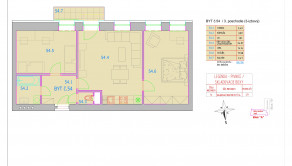 Byt č. 54 je 3-izbový (73,74 m2), má balkón o výmere 3,74 m2 a pivnicu 3,71 m2. Nachádza sa na 3 poschodí obytného bloku A. Podrobné informácie k bytu a príslušenstvu sú uvedené v pôdoryse, ktorý je súčasťou galérie.