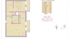 Byt č. 41 je 2-izbový (71,63 m2), má dva balkóny, každý o výmere 3,47 m2 a pivnicu 2,31 m2. Nachádza sa na 4 poschodí obytného bloku B. Podrobné informácie k bytu a príslušenstvu sú uvedené v pôdoryse, ktorý je súčasťou galérie.