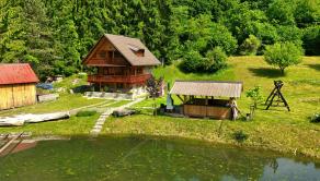 No to nie je všetko! K chate prislúcha veľký uzatvorený altánok, dokonalý pre letné grilovačky a posedenia a dve hospodárske budovy, využívané ako garáž a sklad. A čo poviete na vlastné jazero? Či už ste vášnivý rybár alebo len milujete pohľad na pokojnú vodnú hladinu, toto jazero bude vašou oázou pokoja.