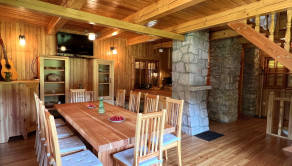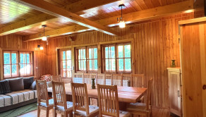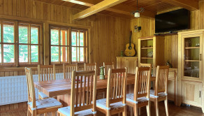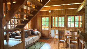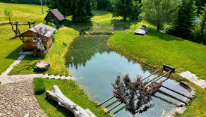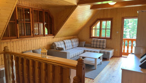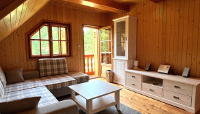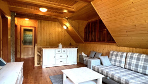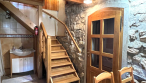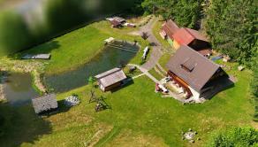 Táto trojpodlažná chata z masívneho dreva, postavená na kamenných múroch 205-ročného mlyna je skutočným klenotom a predáva sa s kompletným zariadením a vybavením. Na prízemí vás privíta plne vybavená kuchyňa s klasickou pecou a krbom. Prvé poschodie ponúka priestrannú spoločenskú miestnosť s barovým pultom - ideálne miesto pre stretnutia s priateľmi. Na druhom poschodí nájdete dve útulné spálne, obývaciu izbu s veľkou rozťahovacou sedačkou a priestrannú kúpeľňu. Každé poschodie je obohatené o veľký balkón s úchvatným výhľadom na okolitú prírodu.