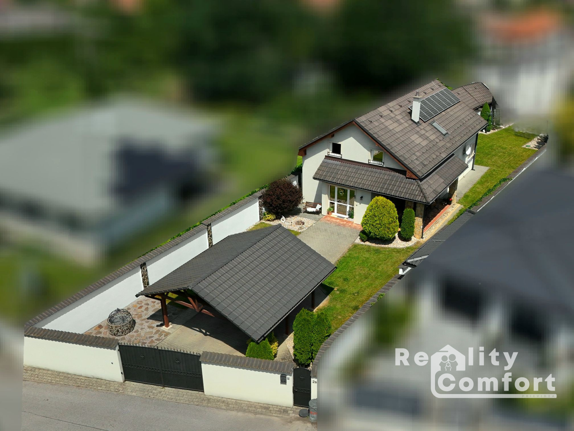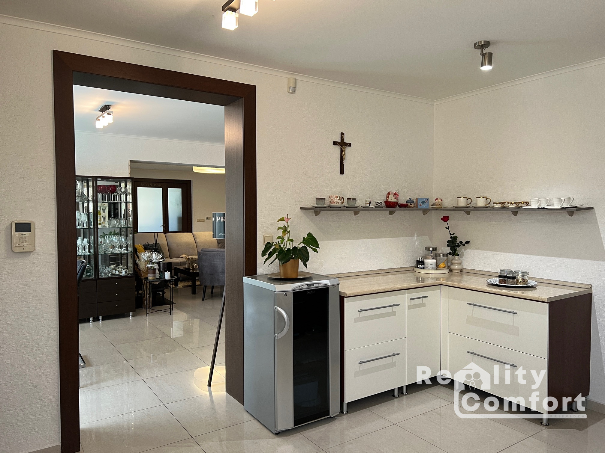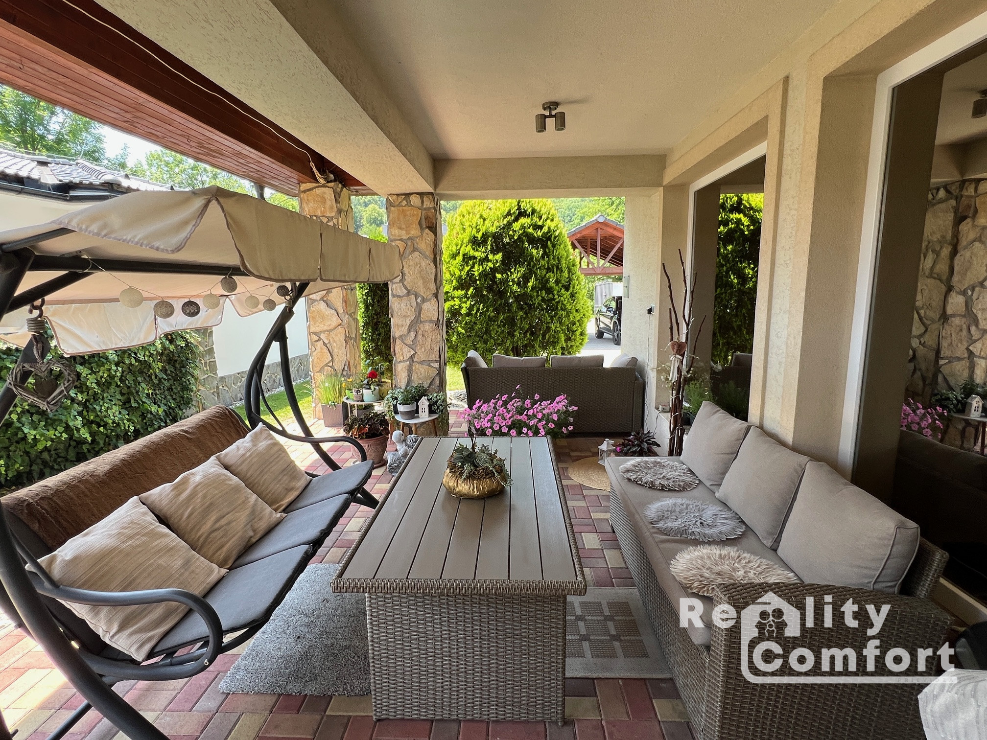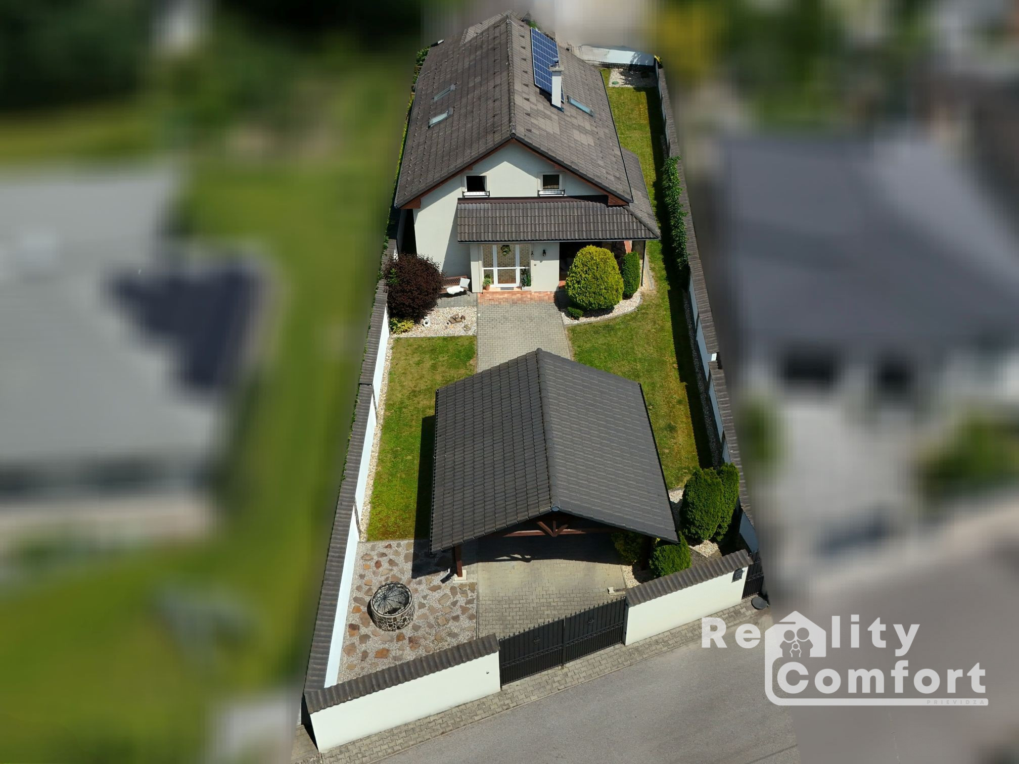 Pri vstupe do domu vás privíta svetlá a vzdušná obývacia izba, ktorá plynulo prechádza do elegantnej jedálne. Tento otvorený priestor je ideálny pre rodinné oslavy aj intímne večery s priateľmi. Z obývacej izby môžete vstúpiť na veľkorysú terasu, kde si môžete vychutnávať rannú kávu alebo večerný pohár vína s výhľadom na nádhernú záhradu. Kuchyňa je skutočným rajom pre milovníkov varenia – moderná, priestranná a vybavená všetkými potrebnými spotrebičmi, doplnená praktickou špajzou pre uloženie všetkých vašich kulinárskych potrieb. Na prízemí sa nachádza tiež samostatné WC a práčovňa, čo zaisťuje, že každodenný život v tomto dome je skutočne pohodlný. Po elegantnom drevenom schodisku sa dostanete na poschodie, kde vás čakajú štyri útulné spálne - každá s vlastným charakterom a atmosférou. Pracovňa poskytuje ideálny priestor pre home office alebo tichú relaxáciu s knihou. Luxusná kúpeľňa s vaňou aj sprchovým kútom je vaším súkromným spa, kde môžete relaxovať po náročnom dni.