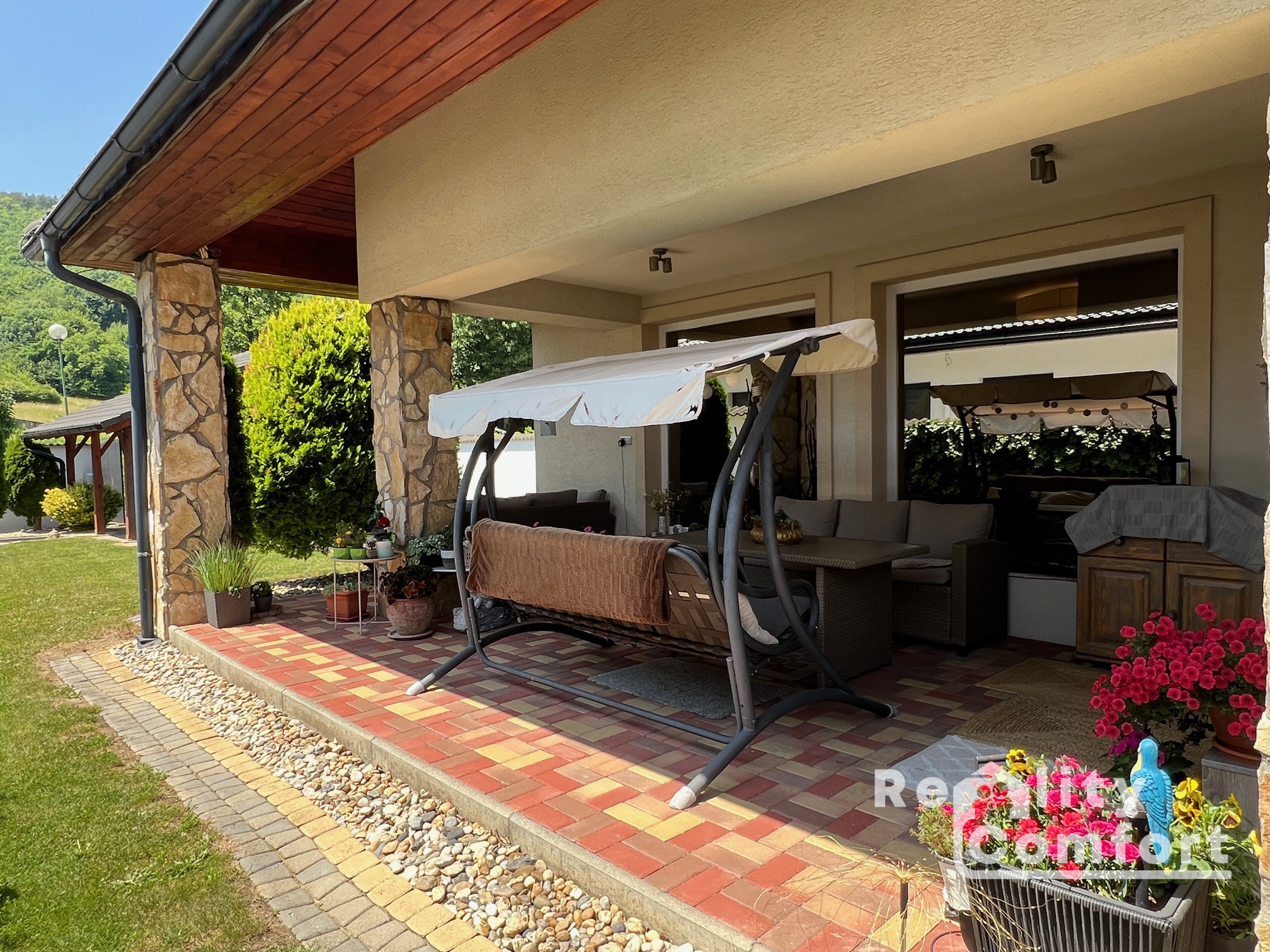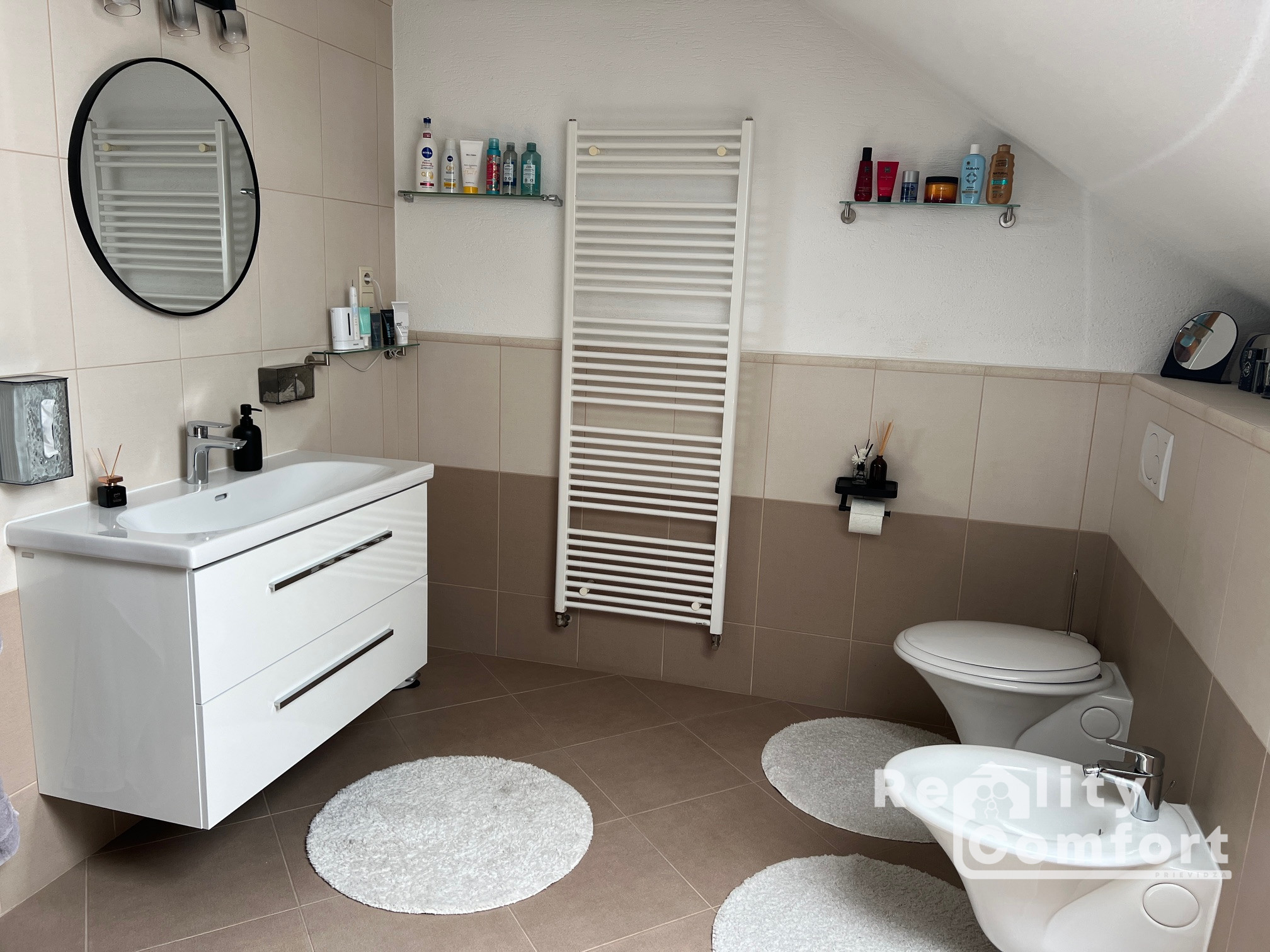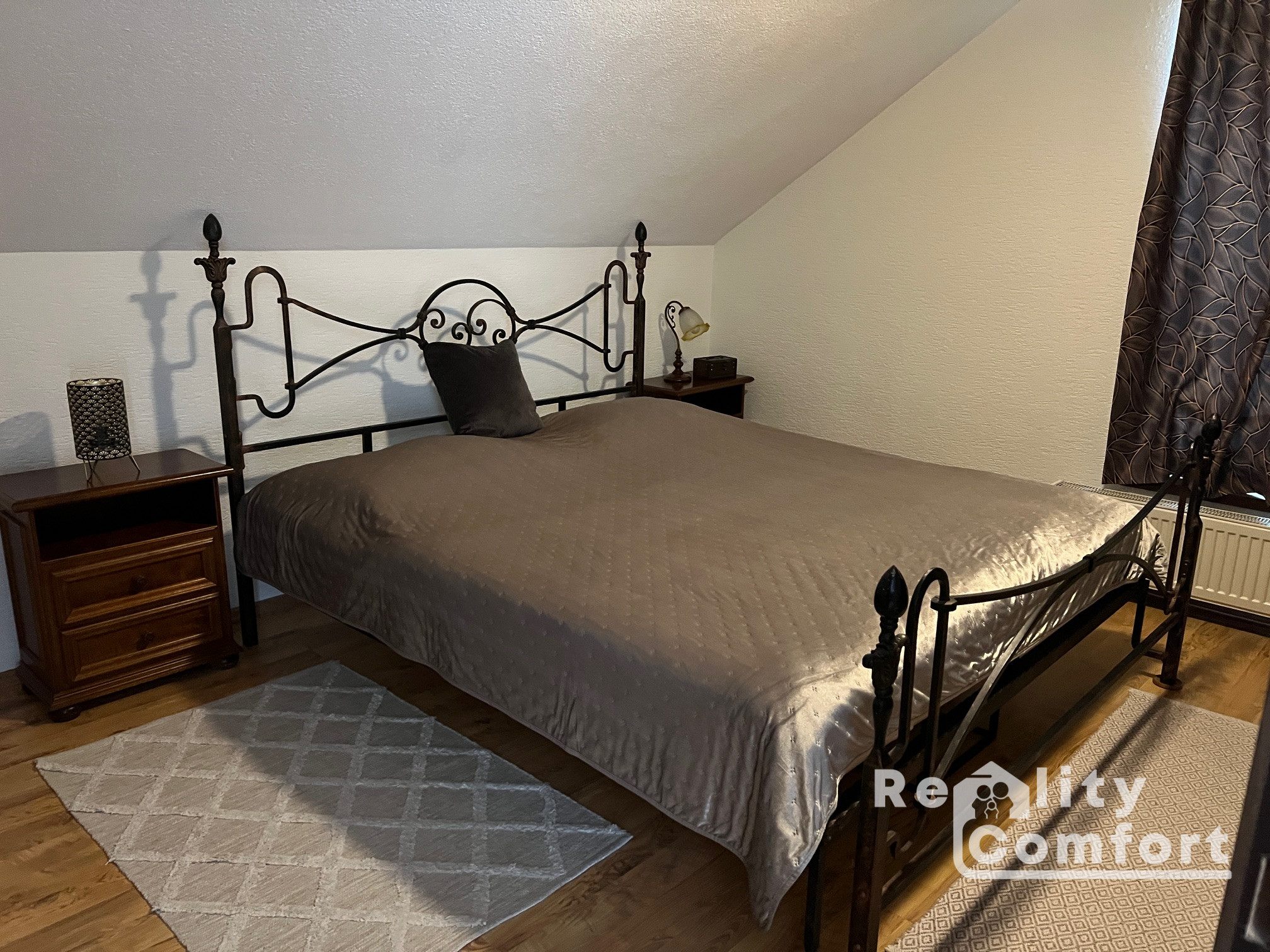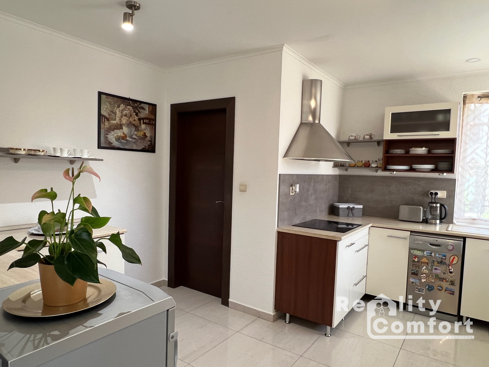 Pri vstupe do domu vás privíta svetlá a vzdušná obývacia izba, ktorá plynulo prechádza do elegantnej jedálne. Tento otvorený priestor je ideálny pre rodinné oslavy aj intímne večery s priateľmi. Z obývacej izby môžete vstúpiť na veľkorysú terasu, kde si môžete vychutnávať rannú kávu alebo večerný pohár vína s výhľadom na nádhernú záhradu. Kuchyňa je skutočným rajom pre milovníkov varenia – moderná, priestranná a vybavená všetkými potrebnými spotrebičmi, doplnená praktickou špajzou pre uloženie všetkých vašich kulinárskych potrieb. Na prízemí sa nachádza tiež samostatné WC a práčovňa, čo zaisťuje, že každodenný život v tomto dome je skutočne pohodlný. Po elegantnom drevenom schodisku sa dostanete na poschodie, kde vás čakajú štyri útulné spálne - každá s vlastným charakterom a atmosférou. Pracovňa poskytuje ideálny priestor pre home office alebo tichú relaxáciu s knihou. Luxusná kúpeľňa s vaňou aj sprchovým kútom je vaším súkromným spa, kde môžete relaxovať po náročnom dni.