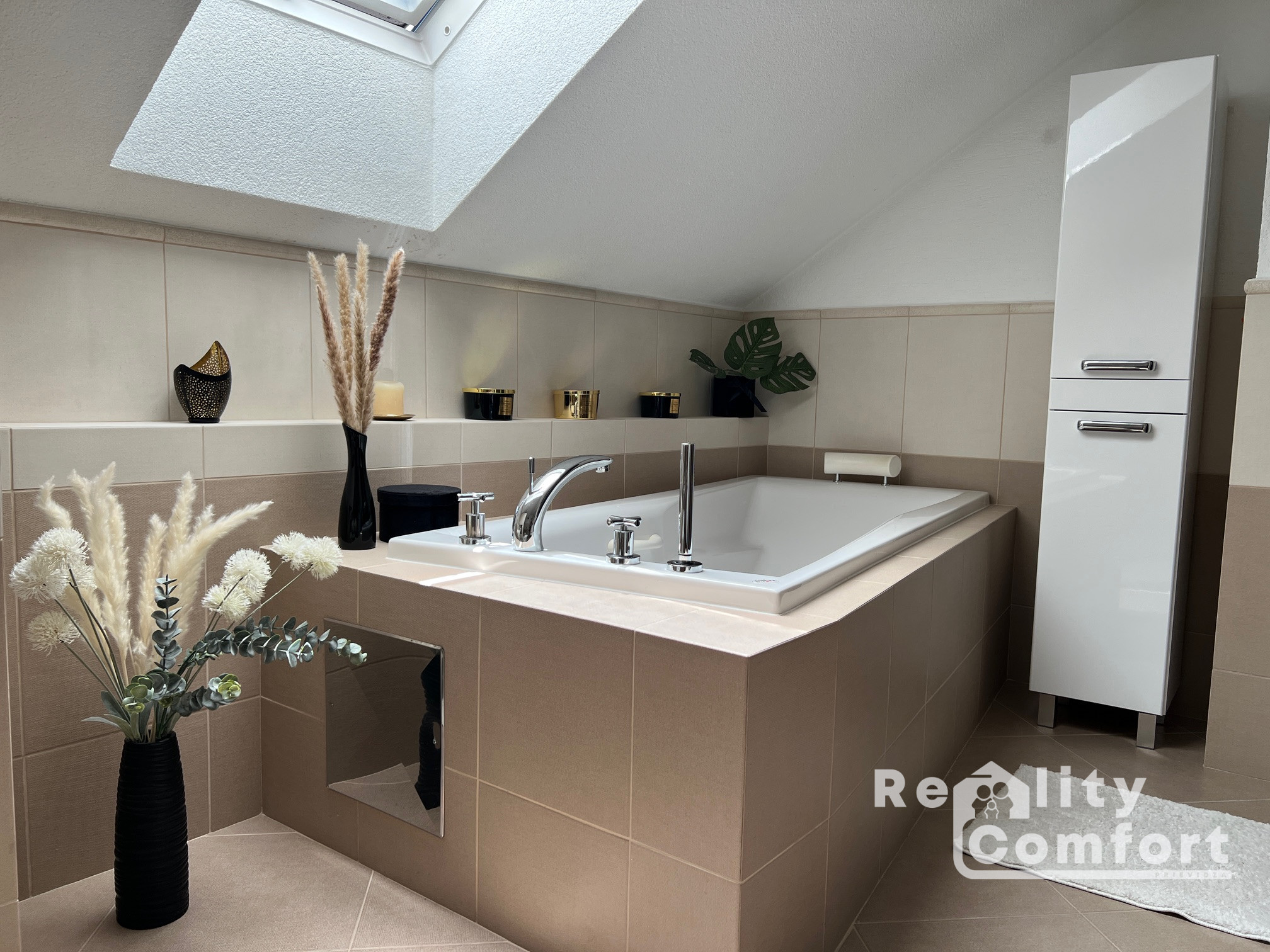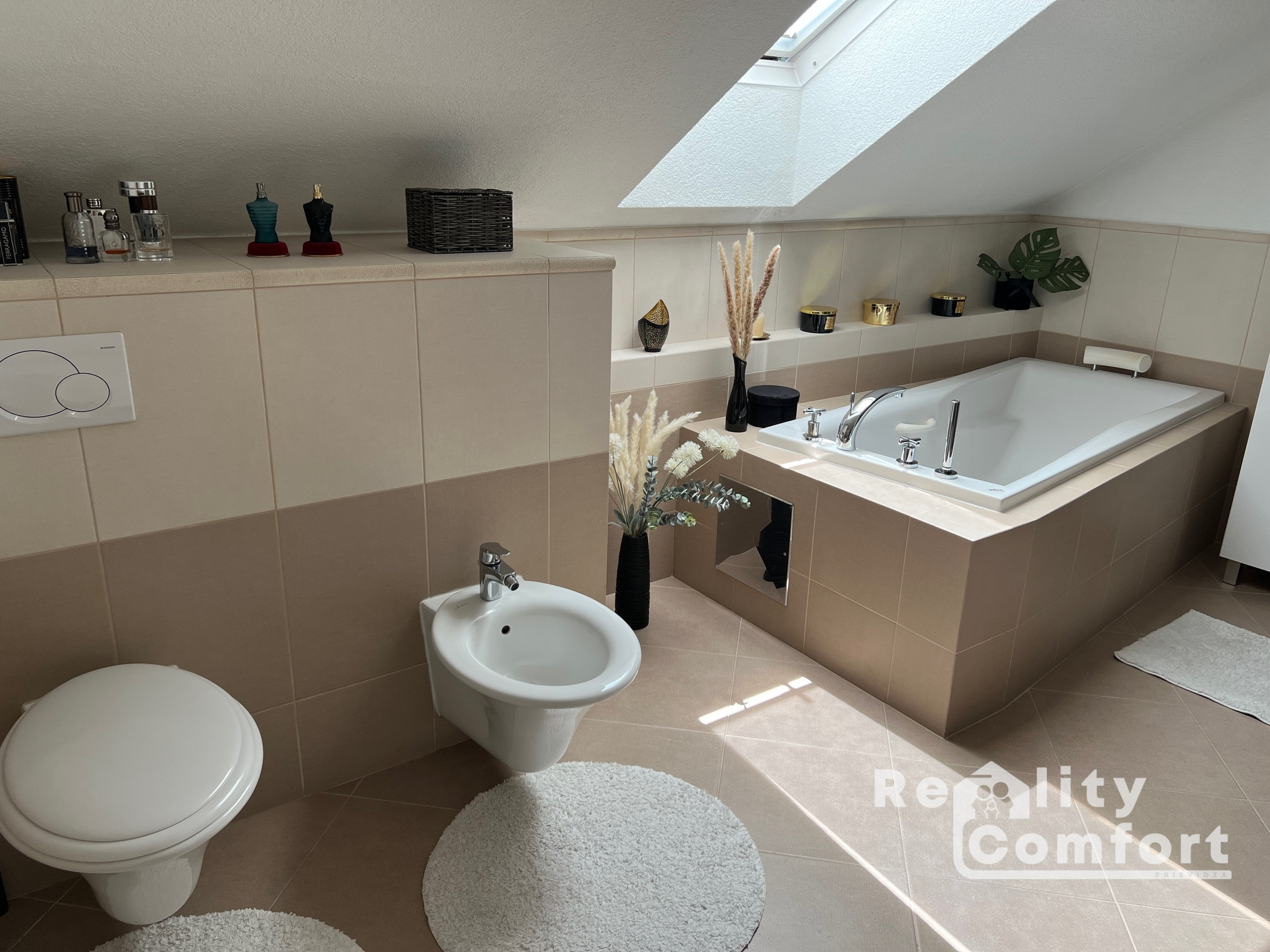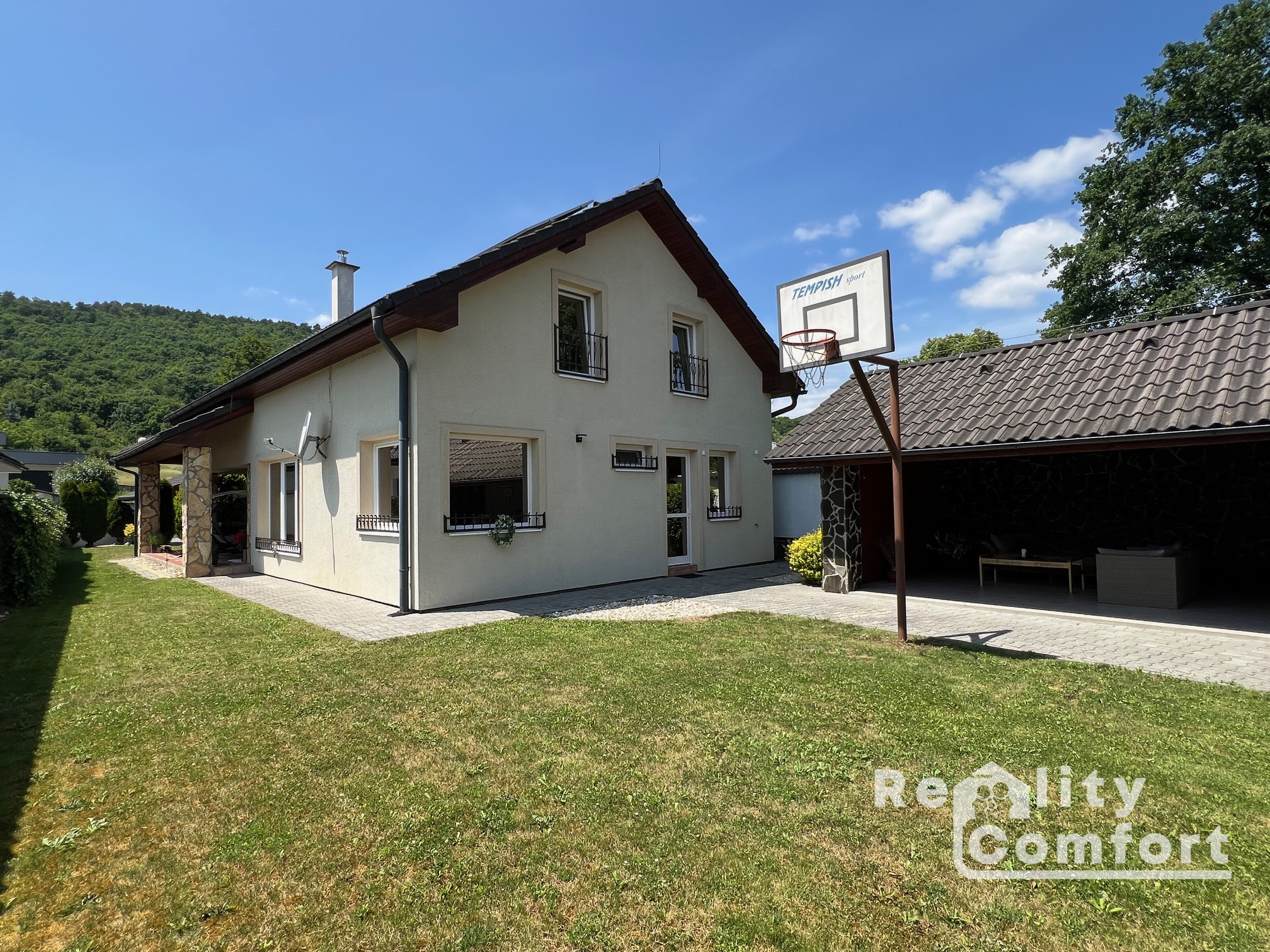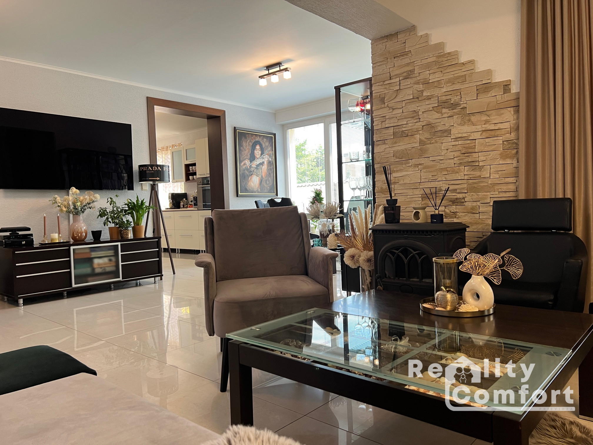 Pri vstupe do domu vás privíta svetlá a vzdušná obývacia izba, ktorá plynulo prechádza do elegantnej jedálne. Tento otvorený priestor je ideálny pre rodinné oslavy aj intímne večery s priateľmi. Z obývacej izby môžete vstúpiť na veľkorysú terasu, kde si môžete vychutnávať rannú kávu alebo večerný pohár vína s výhľadom na nádhernú záhradu. Kuchyňa je skutočným rajom pre milovníkov varenia – moderná, priestranná a vybavená všetkými potrebnými spotrebičmi, doplnená praktickou špajzou pre uloženie všetkých vašich kulinárskych potrieb. Na prízemí sa nachádza tiež samostatné WC a práčovňa, čo zaisťuje, že každodenný život v tomto dome je skutočne pohodlný. Po elegantnom drevenom schodisku sa dostanete na poschodie, kde vás čakajú štyri útulné spálne - každá s vlastným charakterom a atmosférou. Pracovňa poskytuje ideálny priestor pre home office alebo tichú relaxáciu s knihou. Luxusná kúpeľňa s vaňou aj sprchovým kútom je vaším súkromným spa, kde môžete relaxovať po náročnom dni.