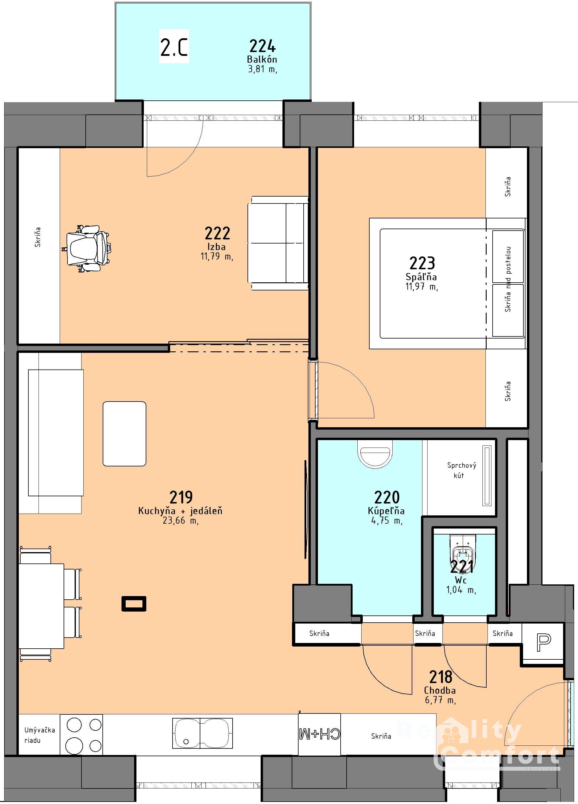 3-izbový Byt č.5 na 1. poschodí s výmerou 63,73 m² ponúka dokonalý komfort v nadštandardnom prevedení.
