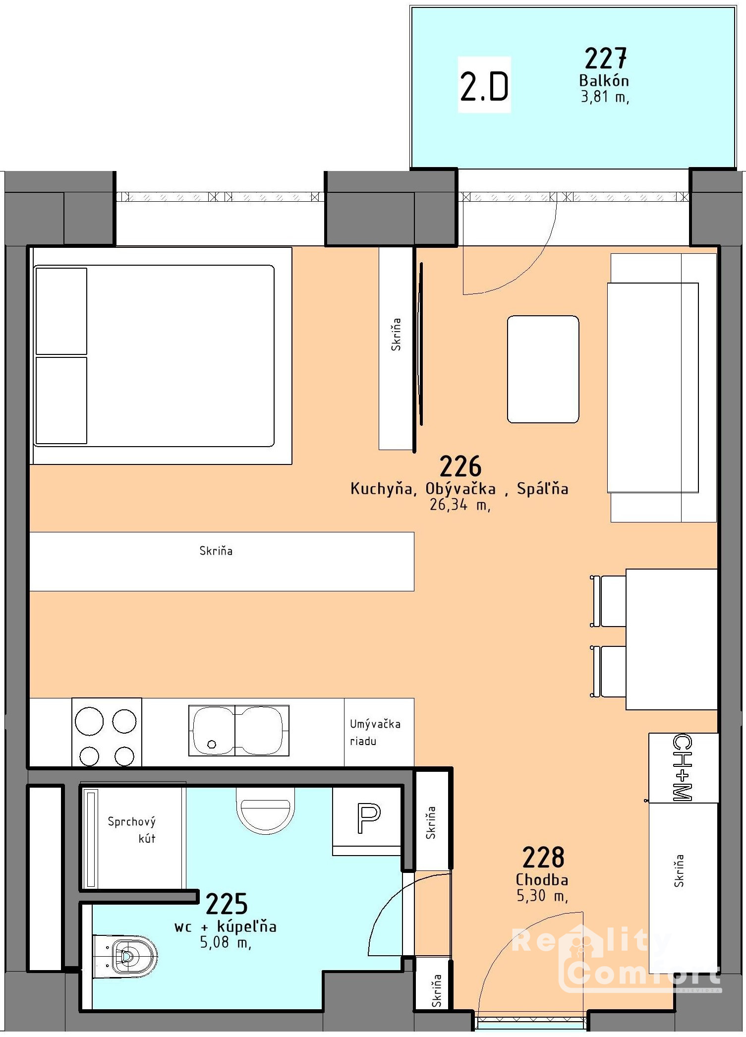 1,5-izbový Byt č. 6 na 1. poschodí s výmerou 40,48 m² ponúka dokonalý komfort v nadštandardnom prevedení.