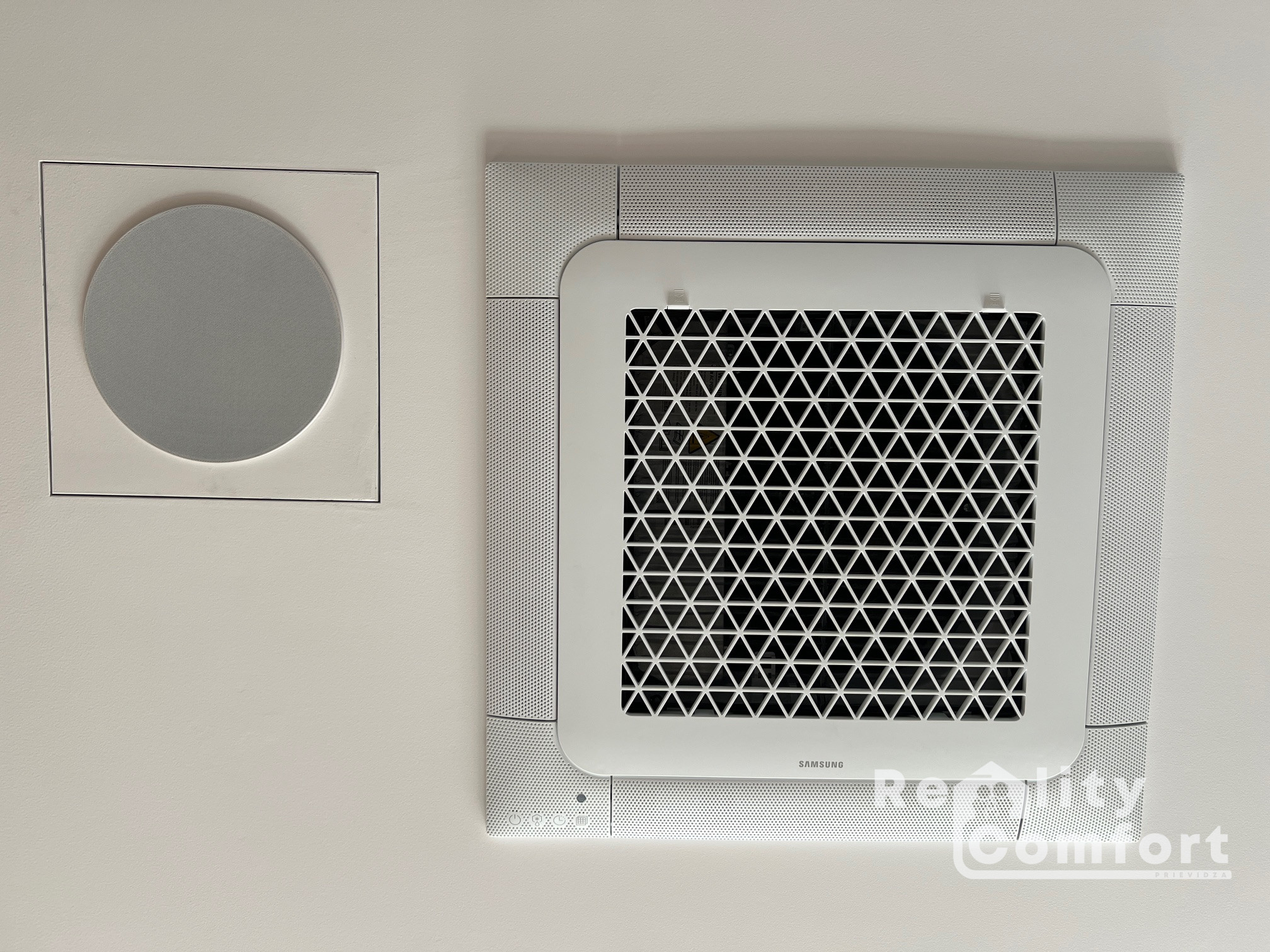 Dizajnová stropná klimatizácia Samsung, ktorá v lete chladí a v zime hreje.