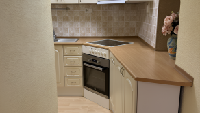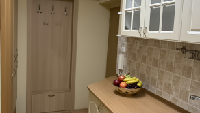 Srdcom celého priestoru je veľkorysá obývačka, ktorá je prakticky prepojená s kuchynským kútom s veľkou rohovou kuchynskou linkou, v ktorej sú už šikovne integrované všetky dôležité vstavané spotrebiče vrátane elektrickej varnej dosky, elektrickej rúry, digestora a chladničky s mrazničkou.