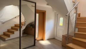 Už pri prvom kroku do tohto dvojpodlažného domu na tichej ulici SNP, ktorá je tvorená výlučne novými domami a budúcim majiteľom ponúka priam úchvatné výhľady na okolitú scenériu, okamžite pocítite nefalšované teplo domova. Je to do detailu premyslené útočisko, vzdialené len desať kilometrov od Prievidze, kde je vnútorný priestor majstrovsky rozdelený tak, aby podporil rodinnú súdržnosť a zároveň poskytol každému jeho vlastný kúsok súkromia.