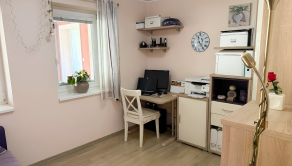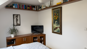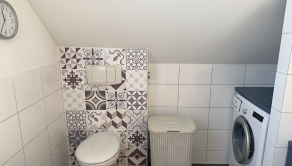 Srdcom prízemia je nádherne presvetlená obývačka s dominantným krbom, ktorý počas dlhých zimných večerov vytvorí tú najkrajšiu magickú atmosféru pre vaše rodinné chvíle. Tento veľkorysý priestor prirodzene prechádza do elegantnej, na mieru vyrobenej kuchyne, ktorá je plne vybavená kvalitnými vstavanými spotrebičmi vrátane chladničky s mrazničkou, elektrickej i mikrovlnnej rúry, umývačky riadu a plynovej varnej dosky. Dokonalé zázemie dennej časti kompletizuje útulná pracovňa pre nerušený home office a moderná kúpeľňa s toaletou, kým poschodie funguje ako tichá nočná zóna s tromi spálňami a druhou plnohodnotnou kúpeľňou.