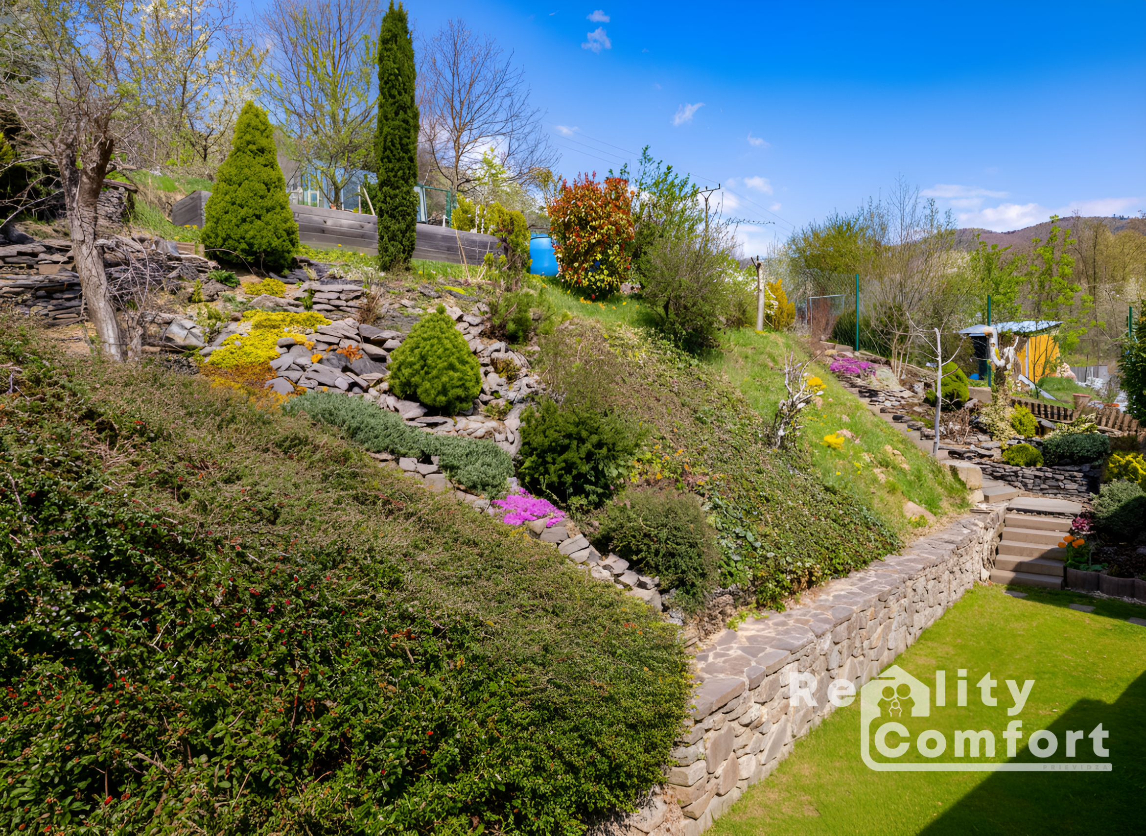 Skutočné kúzlo tejto nehnuteľnosti sa však naplno rozvinie vo chvíli, keď cez obývačku vyjdete na obrovskú prestrešenú terasu a pred vami sa otvorí 762 m2 čistej botanickej harmónie. Už z ulice vás očarí precízna výsadba rôznych okrasných drevín a kvetov v predzáhradke, ktorá sa tiahne okolo celého domu a vytvára dokonalú zelenú oázu. Exteriér je stvorený pre absolútny pôžitok zo života – hneď vedľa terasy máte v šikovnej prístavbe k dispozícii praktickú letnú kuchyňu, prepojenú so skladom a garážou. Ako budete stúpať upraveným, vkusne vysadeným svahom nahor, objavíte svoj vlastný kúsok podhorského raja, ktorému kraľuje slnkom zaliata úžitková záhrada s pripraveným skleníkom a modernými vyvýšenými záhonmi pre pestovanie poctivej domácej úrody.
