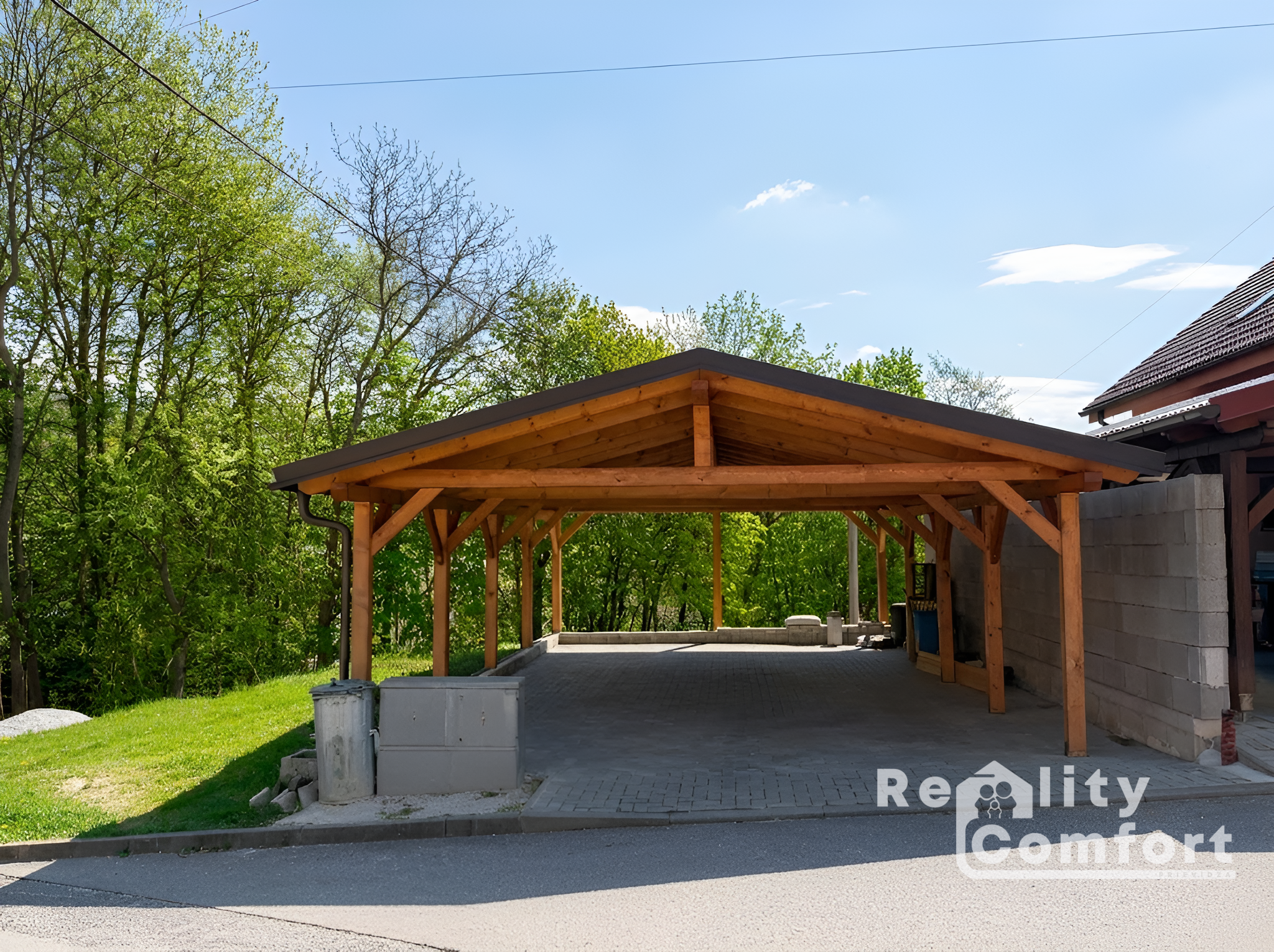 Dom nevyžaduje absolútne žiadne technické kompromisy – je zateplený, vybavený plastovými oknami, spoľahlivou strechou BRAMAC, je plne napojený na všetky inžinierske siete a dokonalý komfort dopĺňa majestátny, až 70 m2 veľký prestrešený altán pred domom pre bezpečné parkovanie vašich áut.